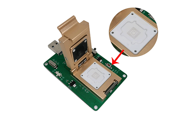通过定制的烧录座与不同封装的芯片连接才能实现程序的烧录,烧录座的本质类似于一种精密夹具,不同封装的芯片需要配合不同的烧录座。