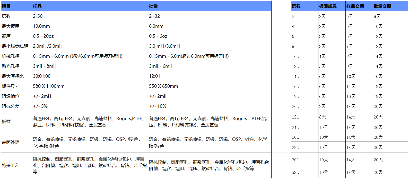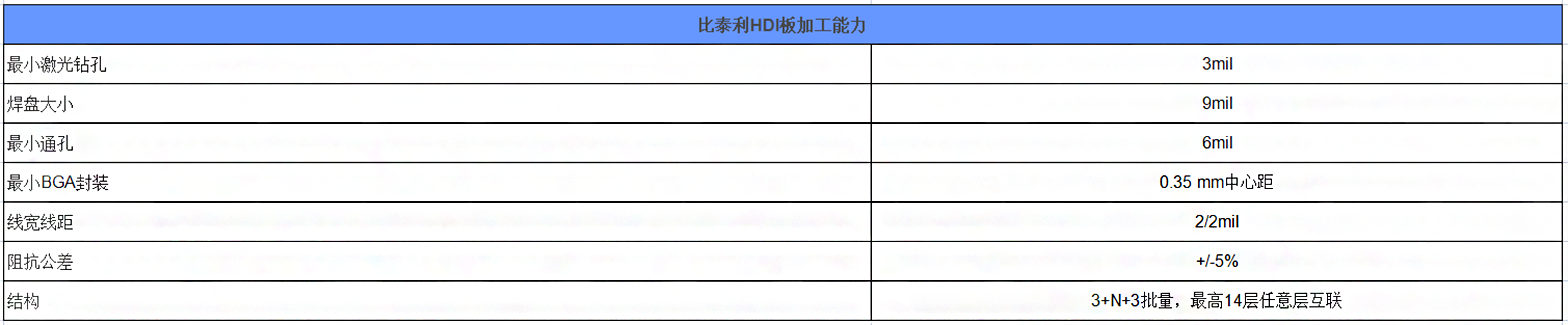 The table below shows our HDI board processing capabilities: